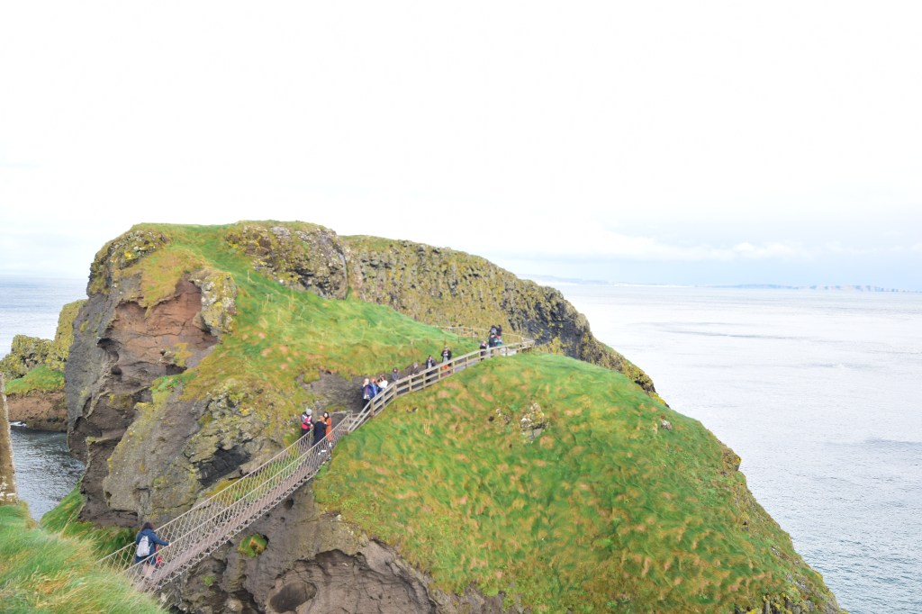 La siguiente parada fue el increíble puente colgante de Carrick a Rede. Desde el parking de visitantes hasta el puente hay un sendero de aproximadamente un kilómetro. El paseo es precioso. Una vez en el puente te tocará esperar tu turno dado que no puede pasar el puente más que 8 personas a la vez, por lo que por lo general se hace cola para pasar.