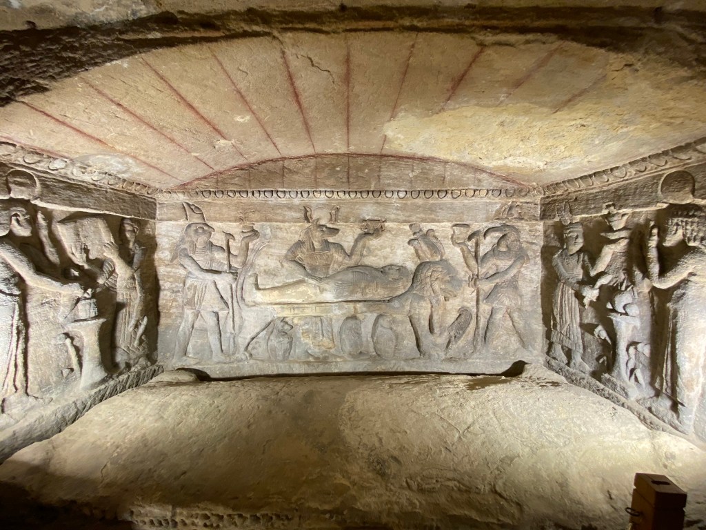 Esta necrópolis grecorromana se encontró de forma accidental al haberse caído un burro en ella. Este complejo de varios niveles excavados en la roca mezcla en su decoración el arte romano, heleno y egipcio. Se accede a través de una escalera de caracol que gira alrededor de un gran pozo, donde se entrelazan varias salas y nichos. La más espectacular de ellas, al final del recorrido, es una cámara adornada con relieves sobre la pared de dioses egipcios y donde se encuentra tres enormes sarcófagos de piedra.